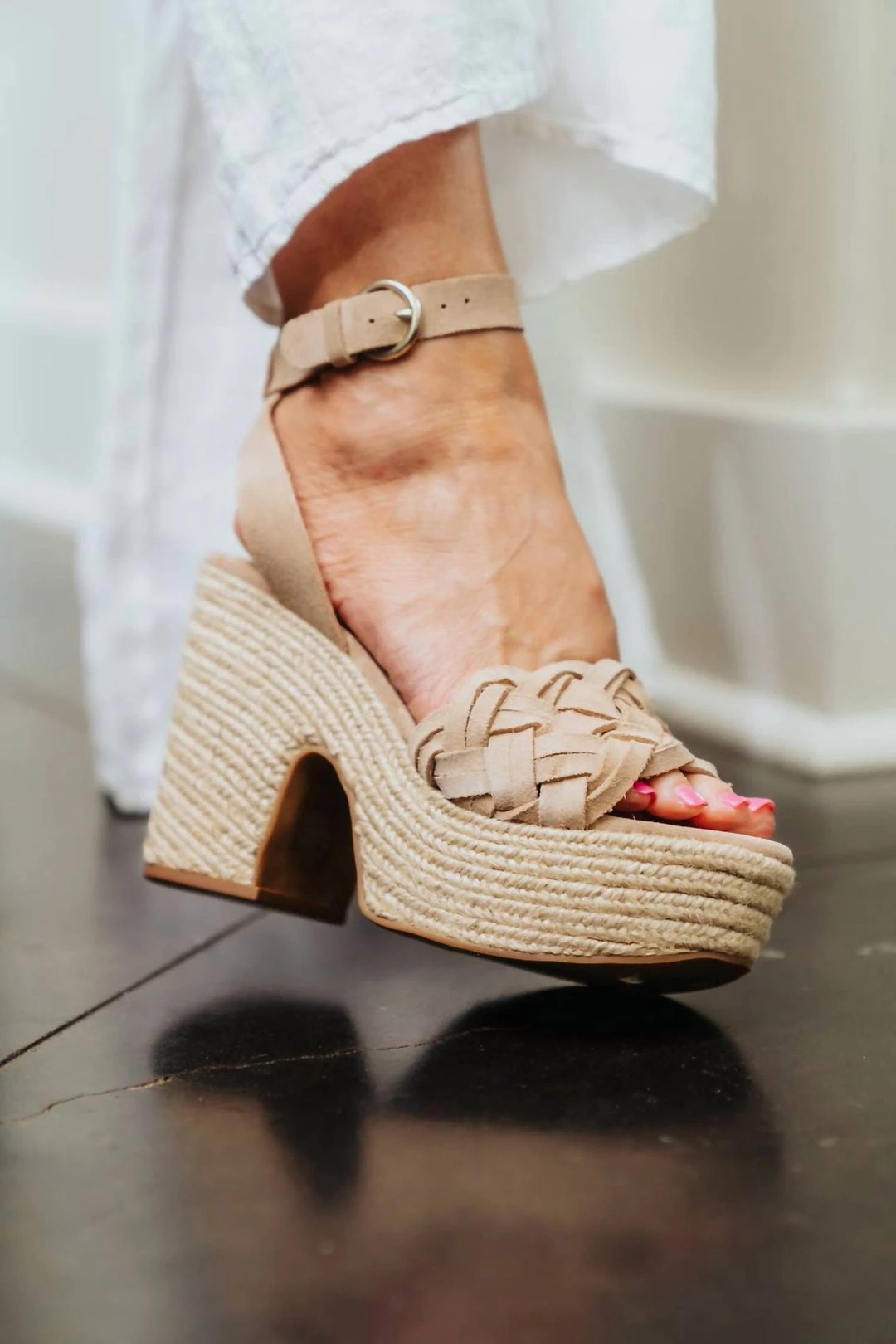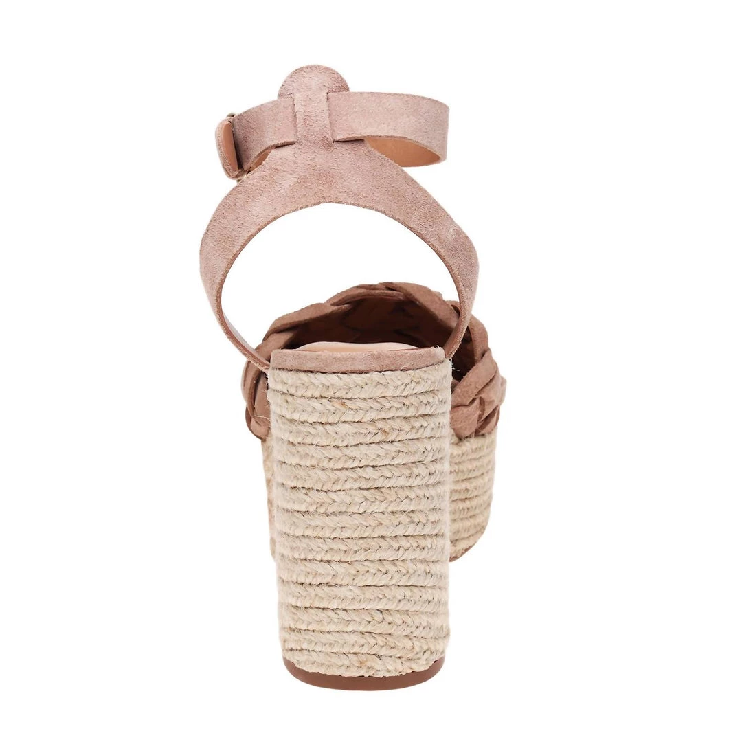 The Odilia is a platform espadrille you will live in all summer long! and goes with everythingAnkle strap with buckle and braided upperHeel Height – 4.72″ heel, 1.97″ platformLeather upperSynthetic lining and outsole