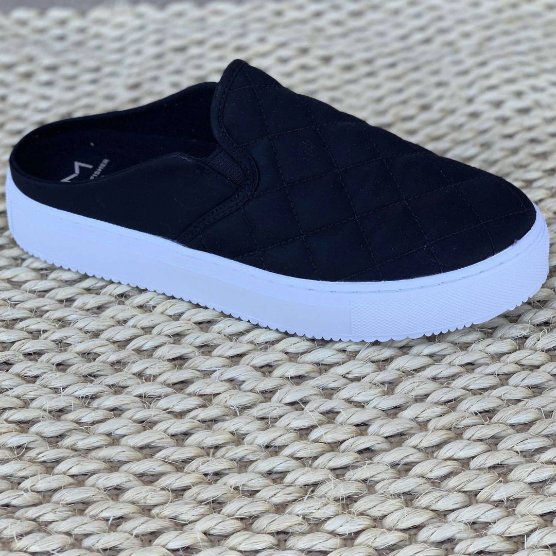 Quilted slip on sneaker with white sole.